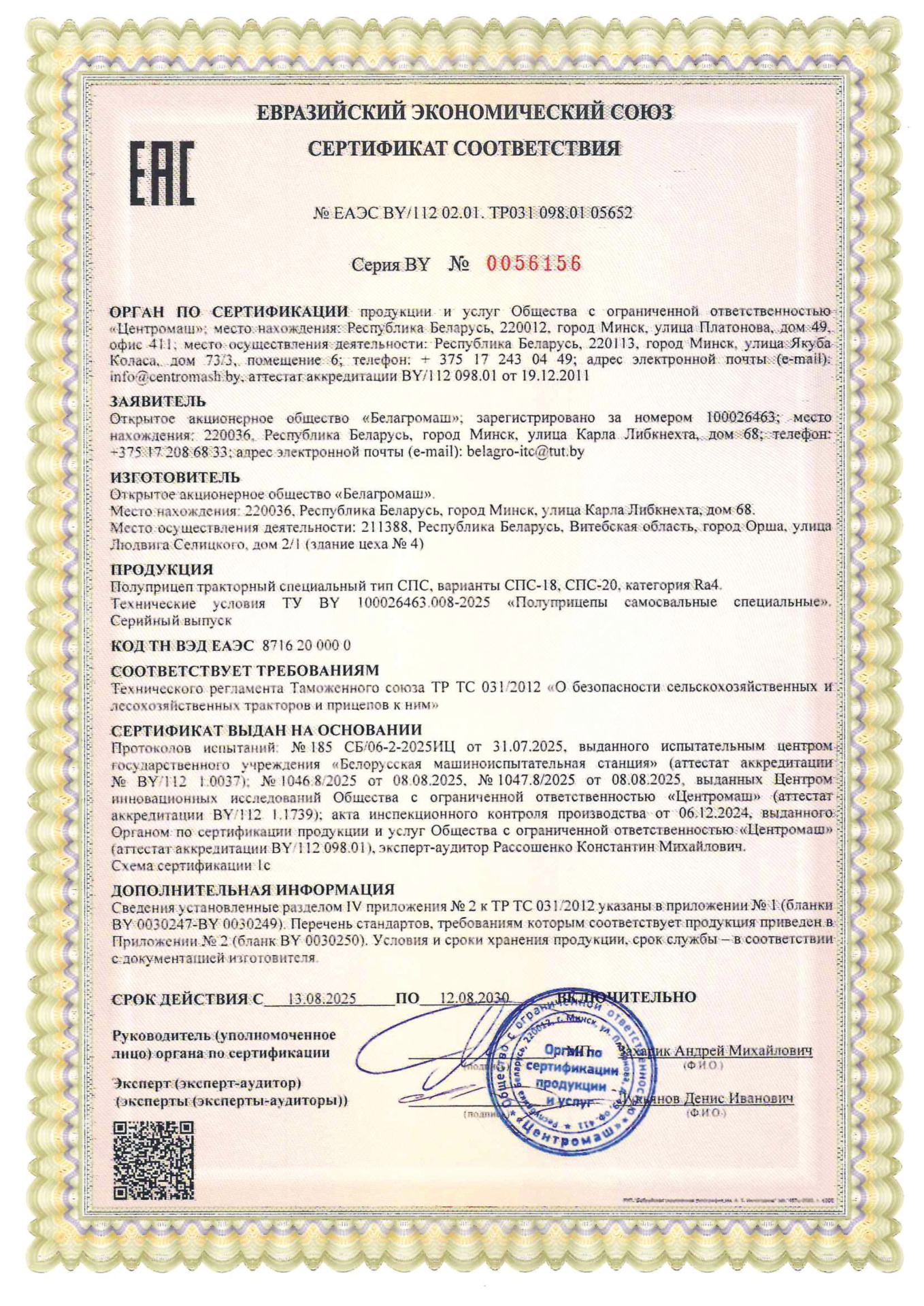 Сертификат соответствия EAC 2ПТС-6/6,5