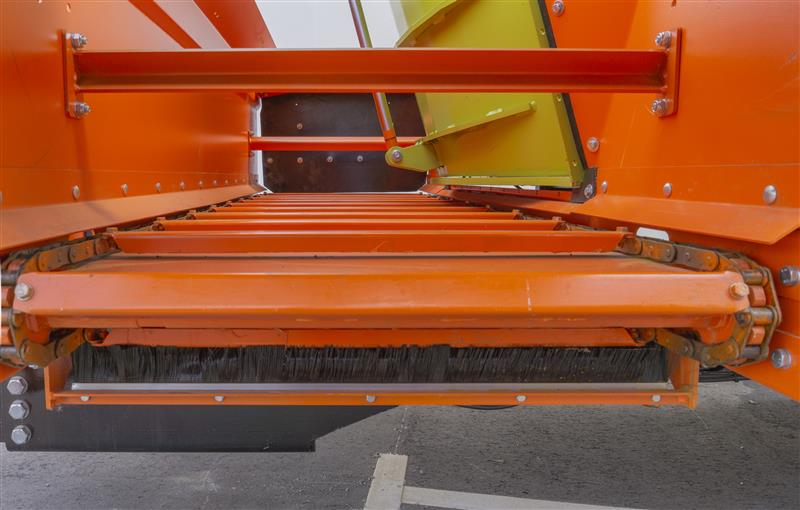 3. Поперечный реверсивный сдвижной транспортер, сдвигается на 220мм в левую или правую сторону, привод от гидросистемы трактора, управление из кабины трактора
